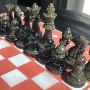 Introducing our exclusive Handcrafted Hardboard Chess Set, meticulously designed with precision and care. Measuring 12 inches by 12 inches, this chess set features a beautifully painted hardwood board that doubles as a work of art. Each set is a unique, one-of-a-kind creation, crafted by hand to ensure that no two sets are alike. Elevate your gaming experience with this exceptional chess set that combines vibrant design with the touch of artisan craftsmanship.