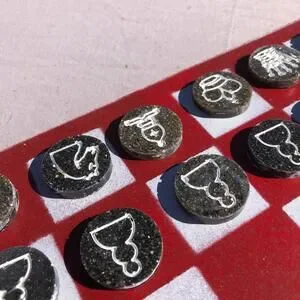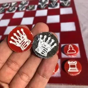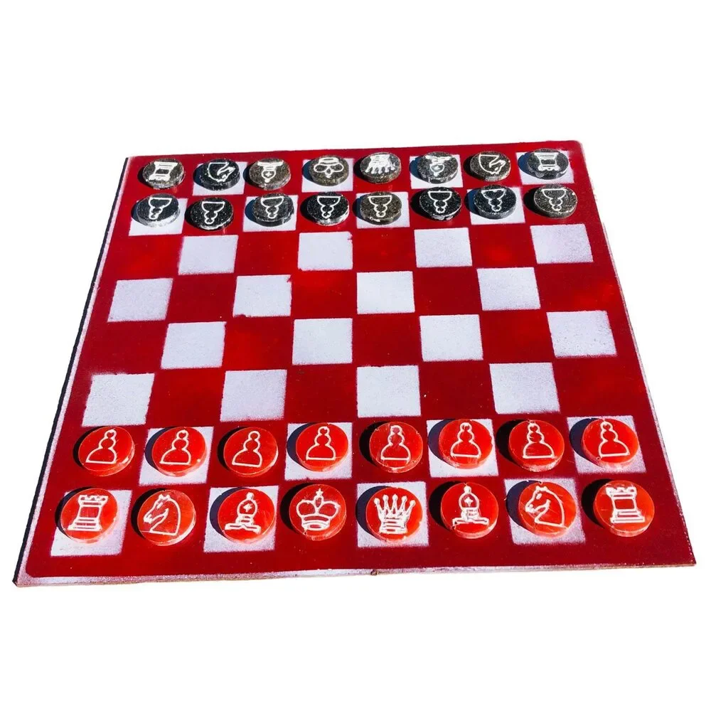Introducing our exclusive Handcrafted Hardboard Chess Set, meticulously designed with precision and care. Measuring 12 inches by 12 inches, this chess set features a beautifully painted hardwood board that doubles as a work of art. Each set is a unique, one-of-a-kind creation, crafted by hand to ensure that no two sets are alike. Elevate your gaming experience with this exceptional chess set that combines vibrant design with the touch of artisan craftsmanship. This chess board comes with chess pieces.