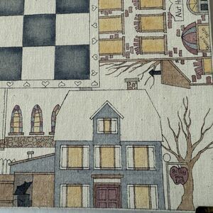 Chess and Checkers Game Board Folk Art Style Illustration of Town Square 15 x 15