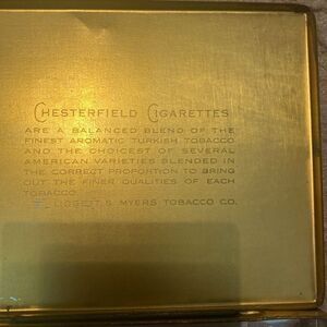 Add this vintage Chesterfield tin cigarette case to your collection today and enjoy a piece of tobacco history. Its timeless design and historical significance make it a cherishe
