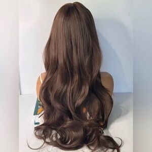 Enhance your look with this long wavy brown wig with bangs, designed from high-quality heat resistant synthetic fibers for a silky, natural finish. The soft waves and full fringe create a youthful, stylish appearance that flatters any face shape. With a lightweight, breathable, and glueless cap, this natural-looking wig for women is comfortable for all-day wear and easy to style. Perfect for daily wear, work, fashion, cosplay, parties, or special occasions, this wig delivers instant confidence and a salon-fresh look without the damage or commitment.