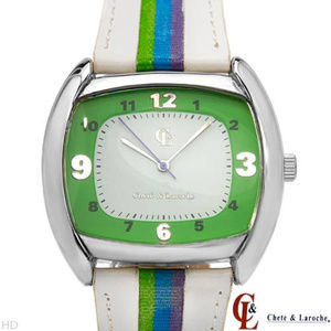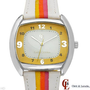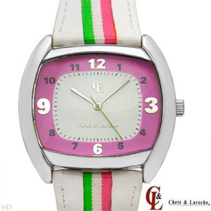 Chete & Laroche Ladies Fashion Watches. Lot of 7. Brand New w Tags. Each Watch comes packaged individually. 1. (2)Two Toned Pink, Green & White Leather Band Watches. 2. Gold Leather Band. 3. Multi-Color Turquoise Satin Band. 4. 5. Orange, Pink & Red Fabric Band. 6. Green, Purple & Blue Fabric Band. 7. Yellow, Orange & White Fabric Band. Selling as a lot. One Price. $125.00.