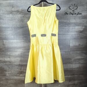 This Chetta B A-line dress, a fresh summer bloom in yellow, is unworn and awaiting a chance to dance. Crafted from pure silk, it promises a luxurious touch against your skin and a fluid movement with every step.