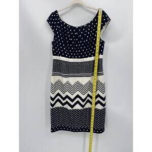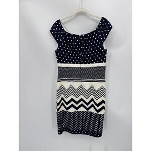 Chetta B Navy Cream Geo Print Cap Sleeve Sheath Dress Size 8 Excellent Condition