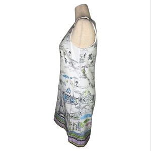 Whisk yourself away to the streets of Paris with this charming sleeveless dress by Chetta B, featuring a dreamy illustrated cityscape print! From cafés and park strolls to the iconic Eiffel Tower, this playful Parisian scene is printed in pastel hues across a crisp white background, bringing whimsical romance to any wardrobe.