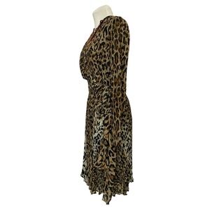 Chetta B Peter Noviello Sherrie Bloom Leopard Wrap Dress: This stunning dress vintage dress features a pleated bottom, v-neckline, tie sash, long sleeves, lined, light shoulder pads, gold square button on the sleeve. This beauty is perfect for date night, a cocktail party or an elegant evening out.