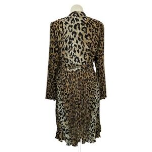 Chetta B Peter Noviello Sherrie Bloom Leopard Wrap Dress: This stunning dress vintage dress features a pleated bottom, v-neckline, tie sash, long sleeves, lined, light shoulder pads, gold square button on the sleeve. This beauty is perfect for date night, a cocktail party or an elegant evening out.