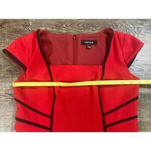 Chetta B Red Black Sheath Dress Lined Occasional Career Versatile Size 2. This is in excellent new without tags condition. It is fully lined and has a zip up back closure. Gorgeous dress. Please message me prior to purchase with any questions. Thank you!