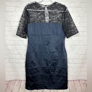 chest flat 20", length 41", lace top satin dress lined, there is a little stretch, great used condition