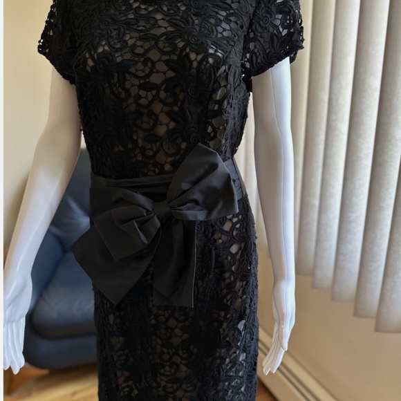Chetta B Sherrie Bloom Peter Noviello Black Lace Cocktail Dress Sz 12 Bow Belt