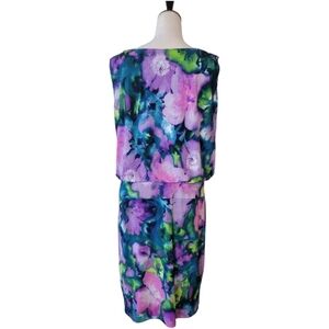 Chetta B Sleeveless Watercolor Print Dress Size 16