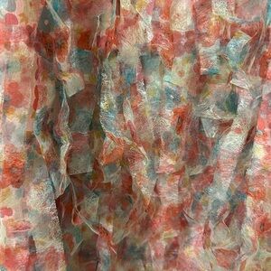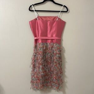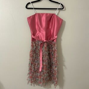 Chetta B Silk Strapless Dress Pink w/Pastel Multicolor Floral Frill Sz 10