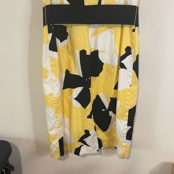 Chetta B Sunhee Women's Sheath Dress Midi Geometric Cap Sleeve Yellow Size 2
