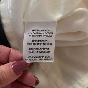 Material: Shell 97% Cotton 3% Spandex Lining 100% Acetate