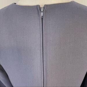 Gorgeous blue/gray two piece suit has mink trimmed sleeves. A true classic of high quality construction. Top zips up the back as does the skirt.