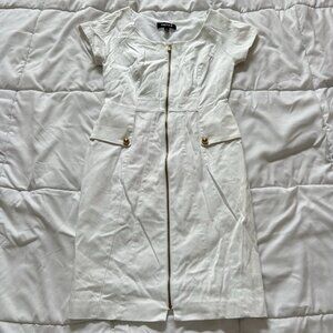 Chetta B Womens 2 White Full Front Zip Sheath Dress Office Casual Business