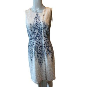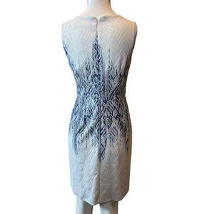 Chetta B Womens Abstract Print Sheath Dress Sleeveless Back Zip White Navy Sz 2