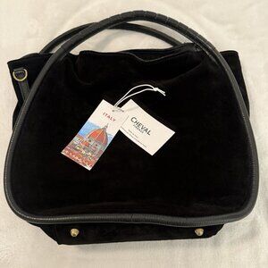 Cheval Firenze Black Suede Hobo Handbag Purse Chic Bag