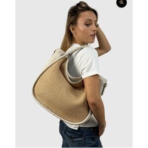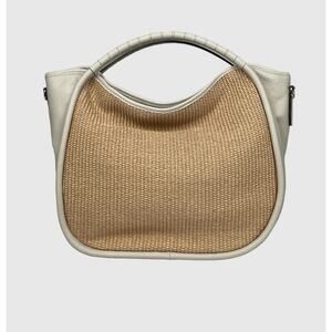 New Cheval Firenze Corsica Max Italian Leather Raffia Mixed Media Bag Cream 100% Made in Italy leather – Dollar leather – Raffia
