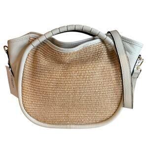 Cheval Firenze Corsica Max Italian Leather Raffia Mixed Media Bag Cream