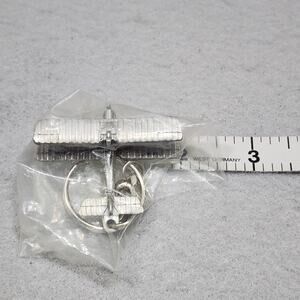 Chevron Bi-Plane Pewter Aviation Key Chain Silver Tone Advertisement Promo NIP