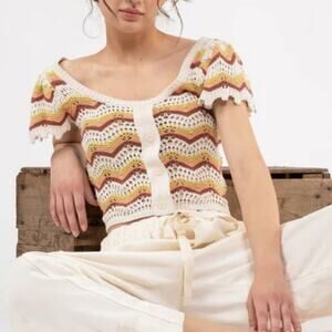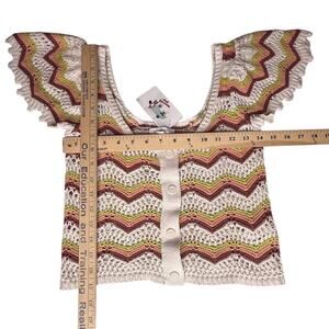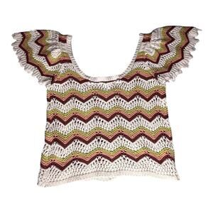 Chevron CROCHET TOP Women's LG Knit Red Raccoon Blu Pepper Pink Cotton Crop Women's TOP - NEW With Tags!