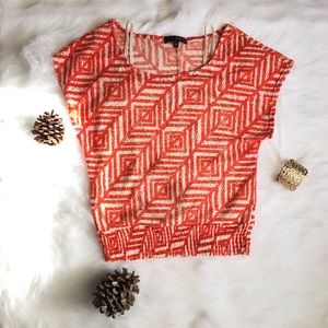 NWOT! Orange & cream chevron design 2-layer short sleeve top. Knit outer layer & silky cream tank under. Made of 100% Polyester. Length 25". Width 17".
