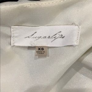 Dress was bought at a boutique. There are some flaws. See pics. One snag on the front and a hole in on of the sleeves. Hole could easily be fixed.