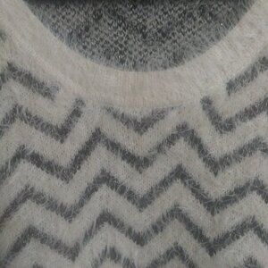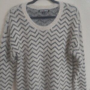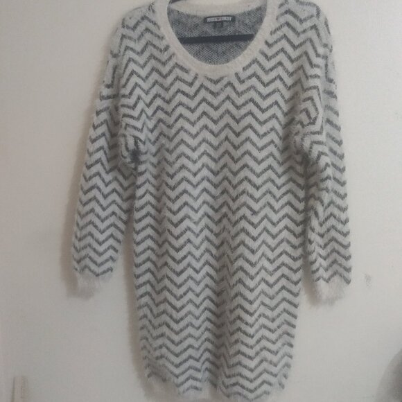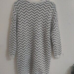 Chevron Fuzzy Knit Sweater Dress by Love & Blind – Gray & White Longline Pullover, Size M