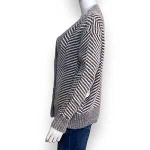 Chevron Herringbone Button-Up Cardigan V Neck Sweater Women's XS