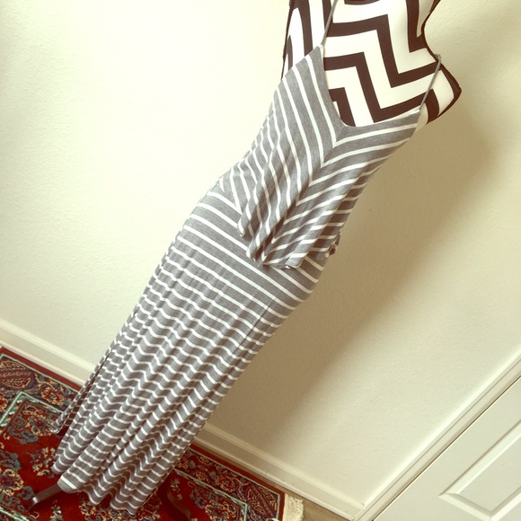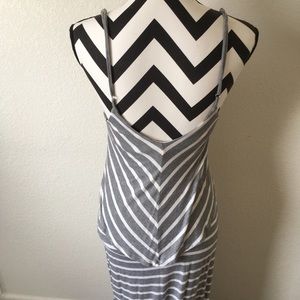 Chevron striping, double side slits and flouncy layers make for a flattering and interesting little maxi! Pair with some white booties and an oversized sunhat for a more contemporary look. Super soft and comfortable, adjustable straps, EUC - hanging straps have been removed.