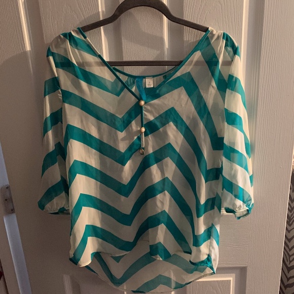 Green and White Chevron Long-Sleeve shirt....very light and breezy. Perfect for Spring/Summer time!