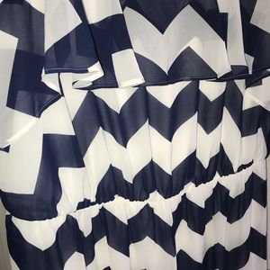 Cute navy and white chevron spaghetti strap ruffled maxi dress! NWT