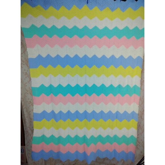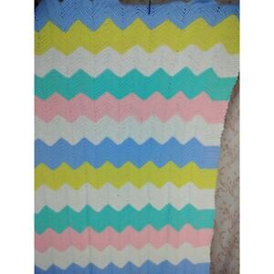 Chevron Multicolored Ripple Afghan Throw Blanket.