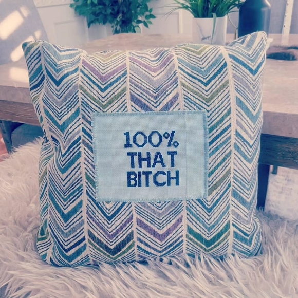 Chevron Pattern 100% That B**ch Cross Stitch Pillow
