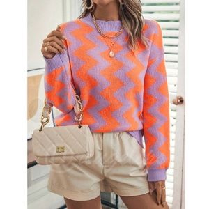 Chevron Pattern Lavender & Orange Pullover Sweater Long Sleeve