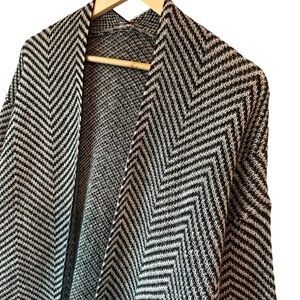 Chevron Pattern Open Front Cardigan Oversized Sweater - Black and White, Small