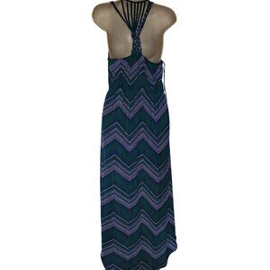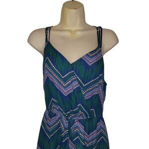 Chevron Pattern Sleeveless Maxi Dress romper With Strappy Back & Tie Waist M