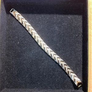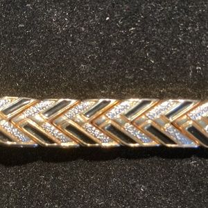 Chevron Pattern bracelet, black enamel and gold probably plated, see pictures for details. Approximately 7.5 inches in length.