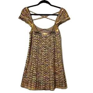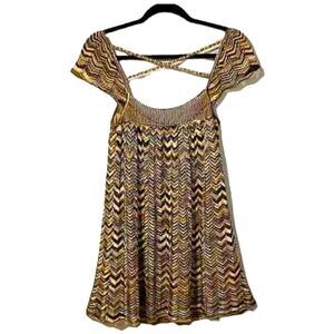 Stylish chevron patterned dress with a mix of black and brown hues. Perfect for any occasion.