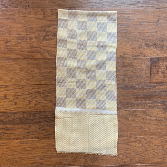 Yellow, brown and cream scarf with frayed ends