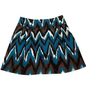 Stylish chevron patterned skirt featuring a blend of blue, brown, and black. Perfect for adding a bold touch to your wardrobe. Has a side zipper, size 12