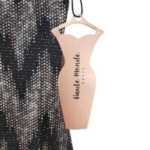 Chevron Print Bodycon Mini Dress Halter Neck Keyhole Back Haute Black Silver M