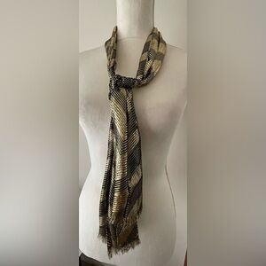 Chevron Print Metallic Gold Silver Scarf Career Office