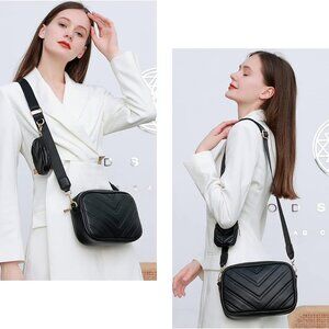Features: Chic quilted design with a compact square shape, made from eco-friendly vegan PU leather. Handy coin pouch on the strap for quick access to your essentials like cards, earbuds, and keys. Features a spacious main compartment with a smooth zipper, gold-tone hardware, and a versatile adjustable strap that can be worn as a crossbody, shoulder bag, or clutch. Lightweight and comfortable, perfect for work, shopping, or nights out.