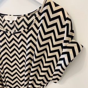 Light taupe & black chevron shift dress with belt. Worn only - couple of times. Like new condition. Size small. From a SMOKE FREE home.