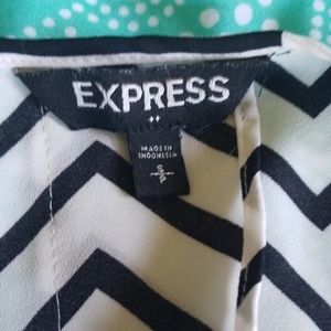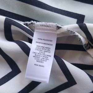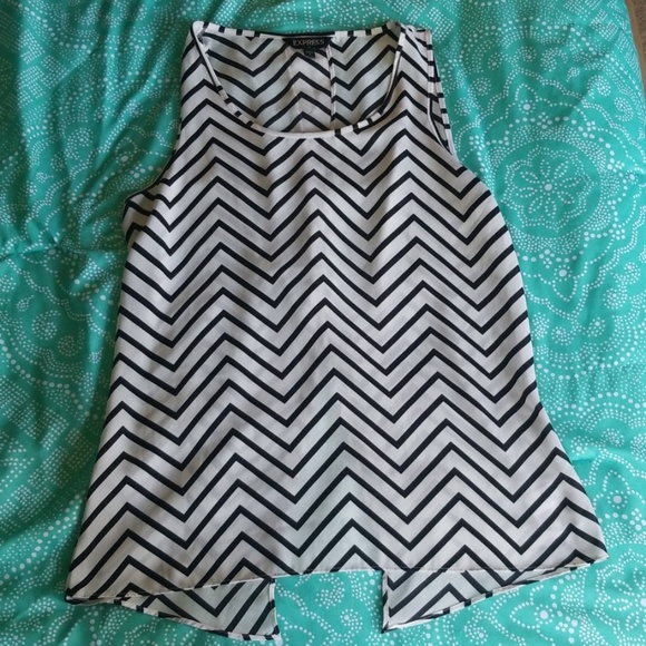 Black and white, Chevron striped tank. Has a split back. Splits up to mid back when worn.