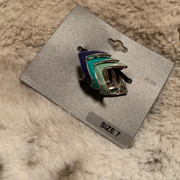 Boutique Chevron Navy Blue, Teal & Mint Green Set of 3 Stacking Rings. Size 7. NWT.
