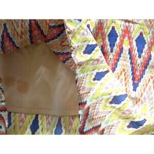 Chevron Strapless Tube Hi Low Size Medium Dress Lined Flowy Multicolor. This chevron pattern hi low dress is lined and so much fun! Really pretty, flowy, beachy, great for travel and so many other occasions. It is a size medium. The back hemline is 38 inches at the lowest point and the front is 27 inches at the shortest hemline. There are two spots on the lining as shown in pictures. I'm not sure if these will come out. I did not stain treat them. Please see pictures for more details.