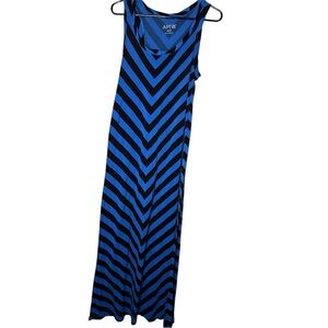 Chevron Stripe Maxi Dress Blue Black Sleeveless Scoop Neck Casual Resort Summer
